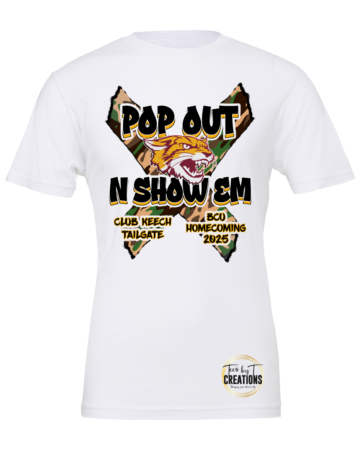 Show your school spirit in style with the Pop Out N Show em... Wildcats tailgate shirt. Crafted for comfort and designed to stand out, this shirt lets you proudly display your Wildcats pride at every game day. Perfect for tailgating or casual wear, it combines bold graphics with a comfortable fit, making it an essential for any dedicated fan ready to cheer on their team. Elevate your game day look and make your presence known!